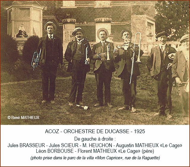 A propos l’article intitulé « LE QUAI DE DECHARGEMENT DES SABLIERES », je tiens à apporter cette précision : la famille GREGOIRE a résidé à une époque dans cette maison – qui est devenue la nôtre – à la rue de la Raguette et c’est cette même famille qui l’a vraisemblablement fait construire. On l’appelait effectivement « Villa Mon Caprice », « Villa des Lutins » ou « Villa Grégoire ». Mais cette maison a d’abord été vendue à la famille TOURNAY qui y a ajouté des annexes (voir photos jointes). Mes parents l’ont ensuite rachetée en l’état en 1953 à Aimée-Marie DESCHEPPER (28/04/1901), veuve de Louis TOURNAY (suivant l’acte de vente). La photo intitulée « ACOZ – ORCHESTRE DE LA DUCASSE – 1925 » de René Mathieu publiée antérieurement sur le blog illustre déjà les transformations. Mais je ne sais absolument rien de cette famille TOURNAY, malheureusement.