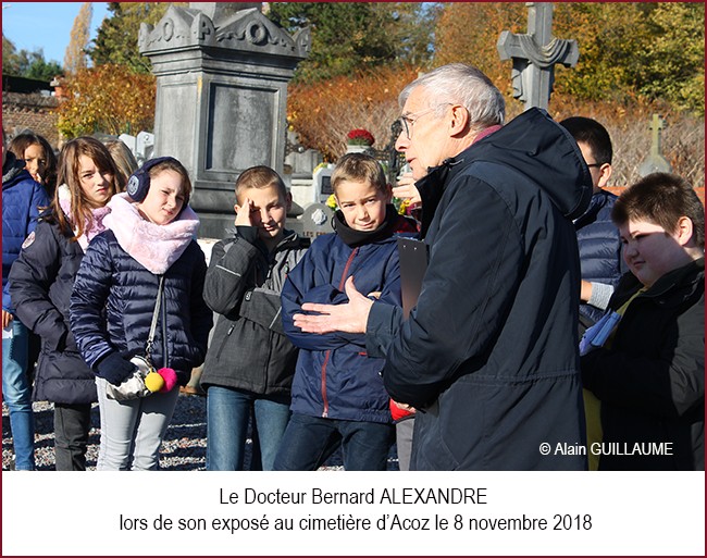 Je vous invite à consulter mon ouvrage « ACOZ de A à Z », tome 4, pages 208-221, où j’ai retranscrit l’exposé de Bernard ALEXANDRE qui a rendu hommage à Jean BOLLE, lors de la visite au cimetière d’Acoz le 8 novembre 2018.